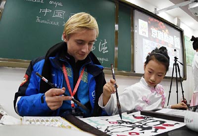 12月7日5357cc拉斯维加斯欢迎您★✿,俄罗斯少年运动员与中国女孩用毛笔共同绘画★✿。当日★✿,参加第一届中俄冬季青少年运动会的俄罗斯青少年运动员在哈尔滨市参与文化交流活动★✿,感受浓郁“中国风”★✿。茶艺★✿、脸谱★✿、书法★✿、民族音乐和各种中国传统民俗技艺★✿,让这些俄罗斯青少年运动员乐在其中★✿。